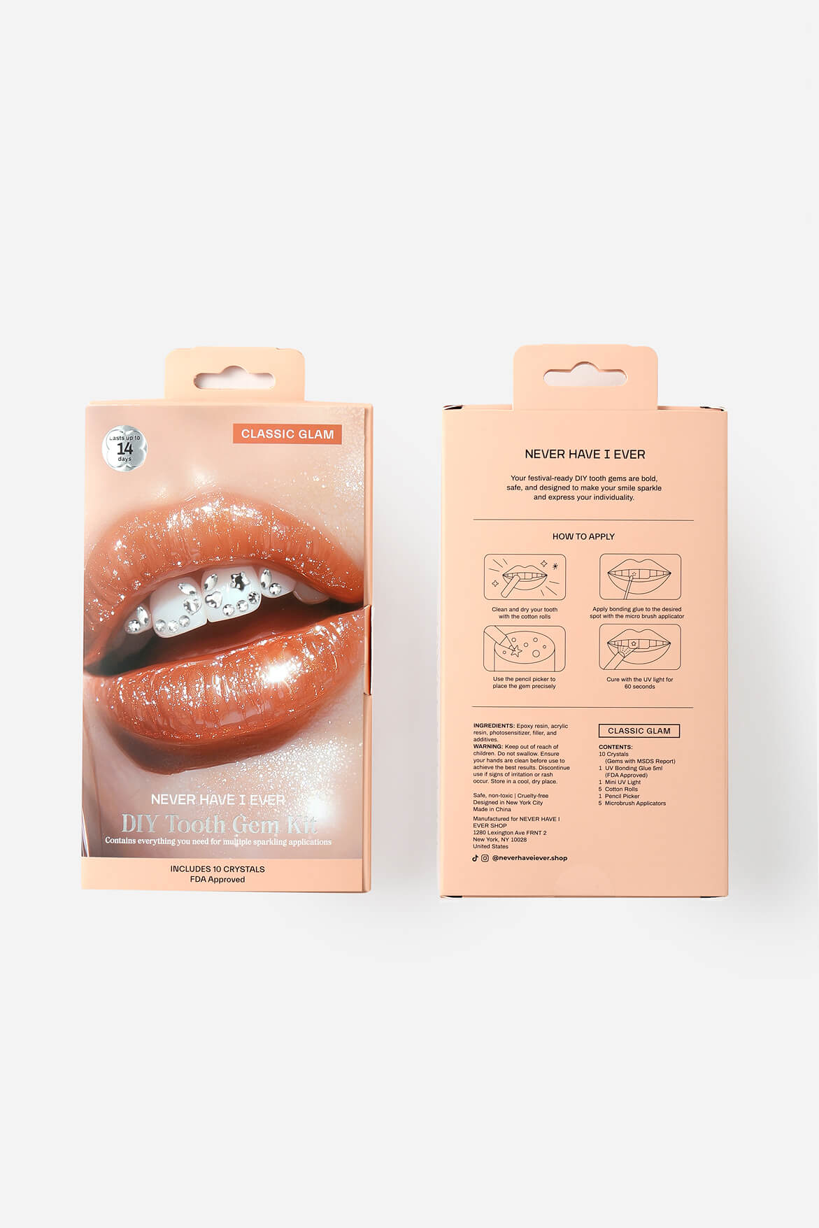 Your festival-ready sparkle, now in full effect. The Peachy Glam Bundle is your go-to trio for instant glam featuring dreamy press-on nails, a sparkle-ready DIY tooth gem kit, and playful temporary tattoos.