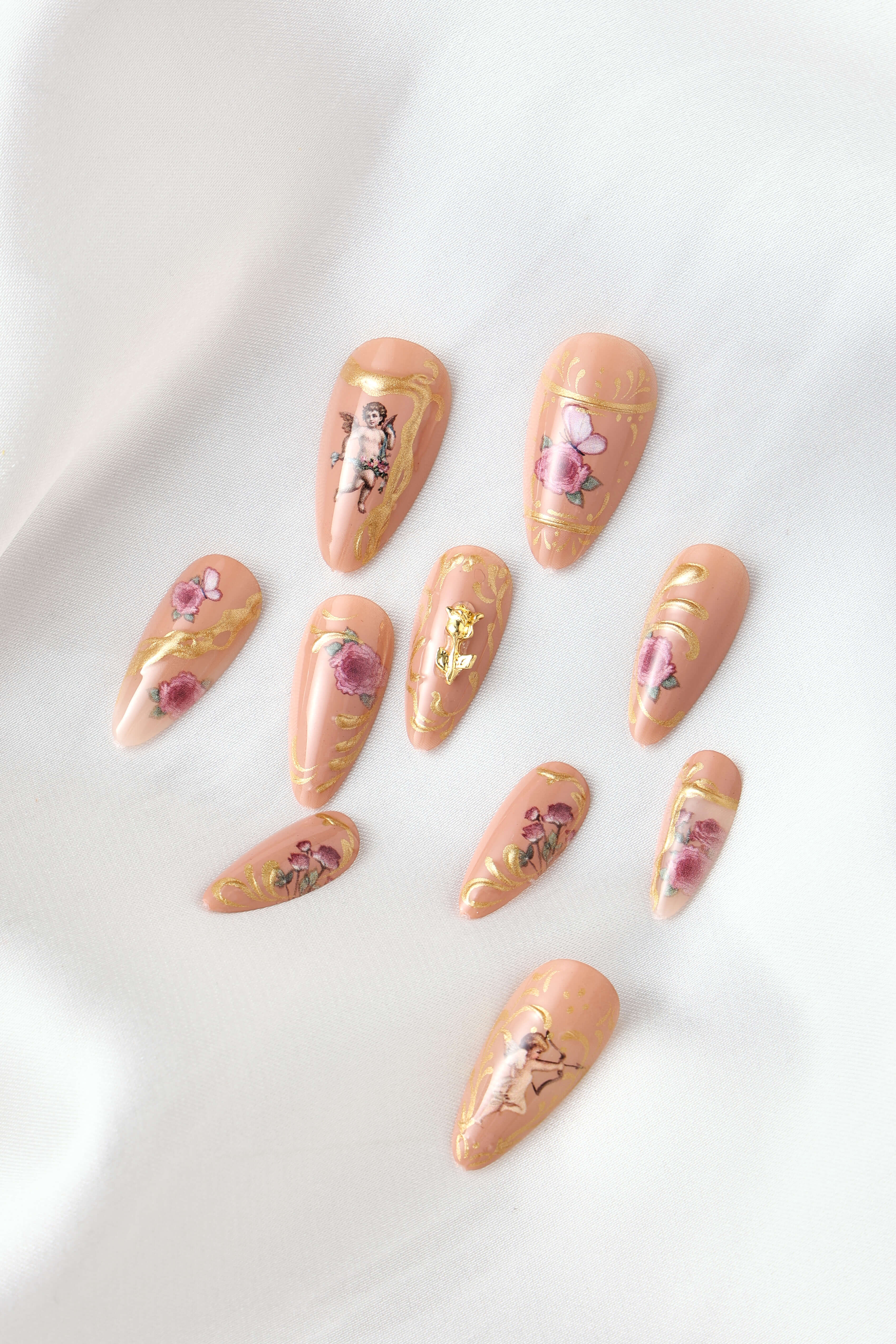 ROSE GOLD ROCOCO - ALMOND PRESS-ON NAILS