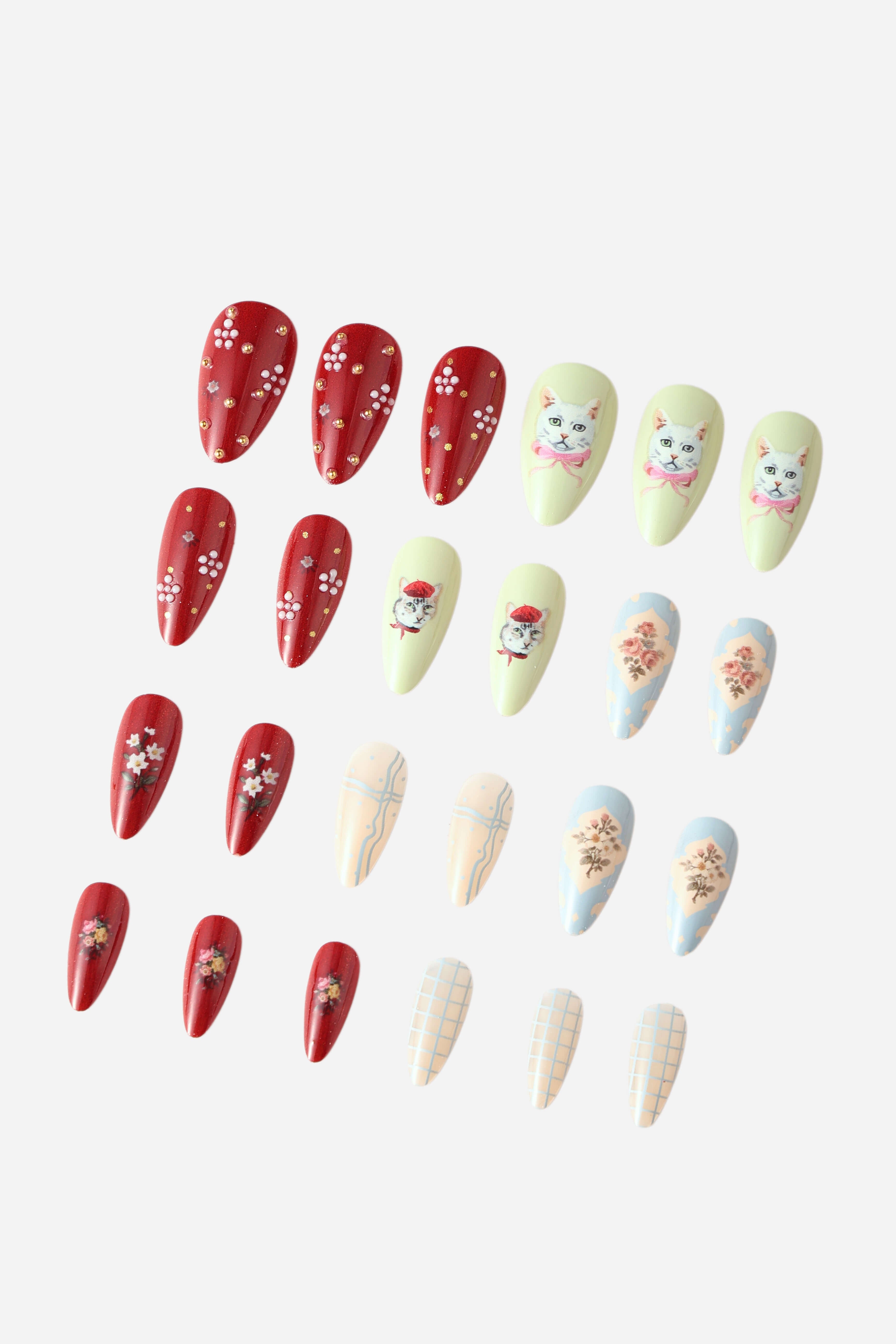 CAT COLLAGE- ALMOND PRESS-ON NAILS