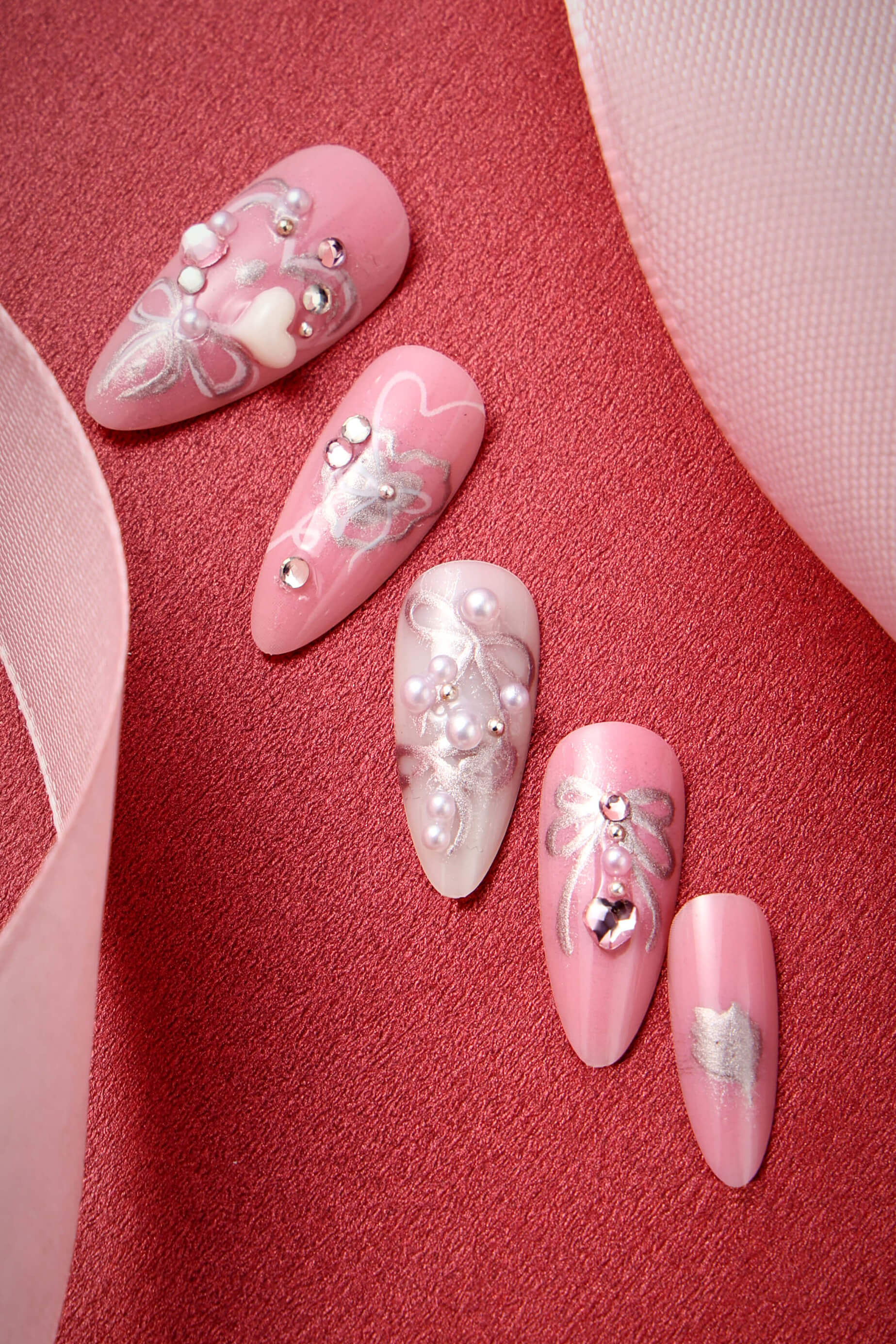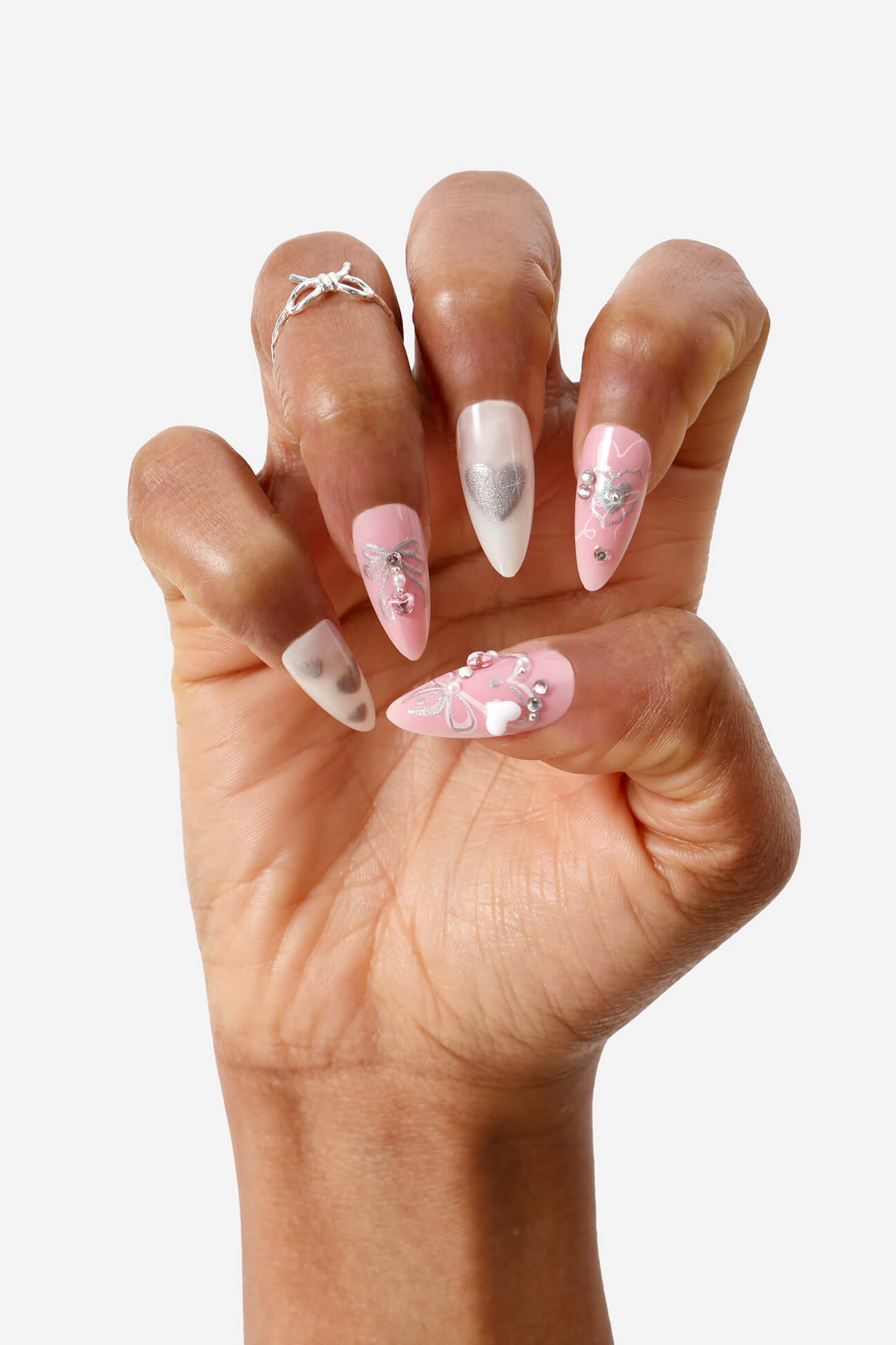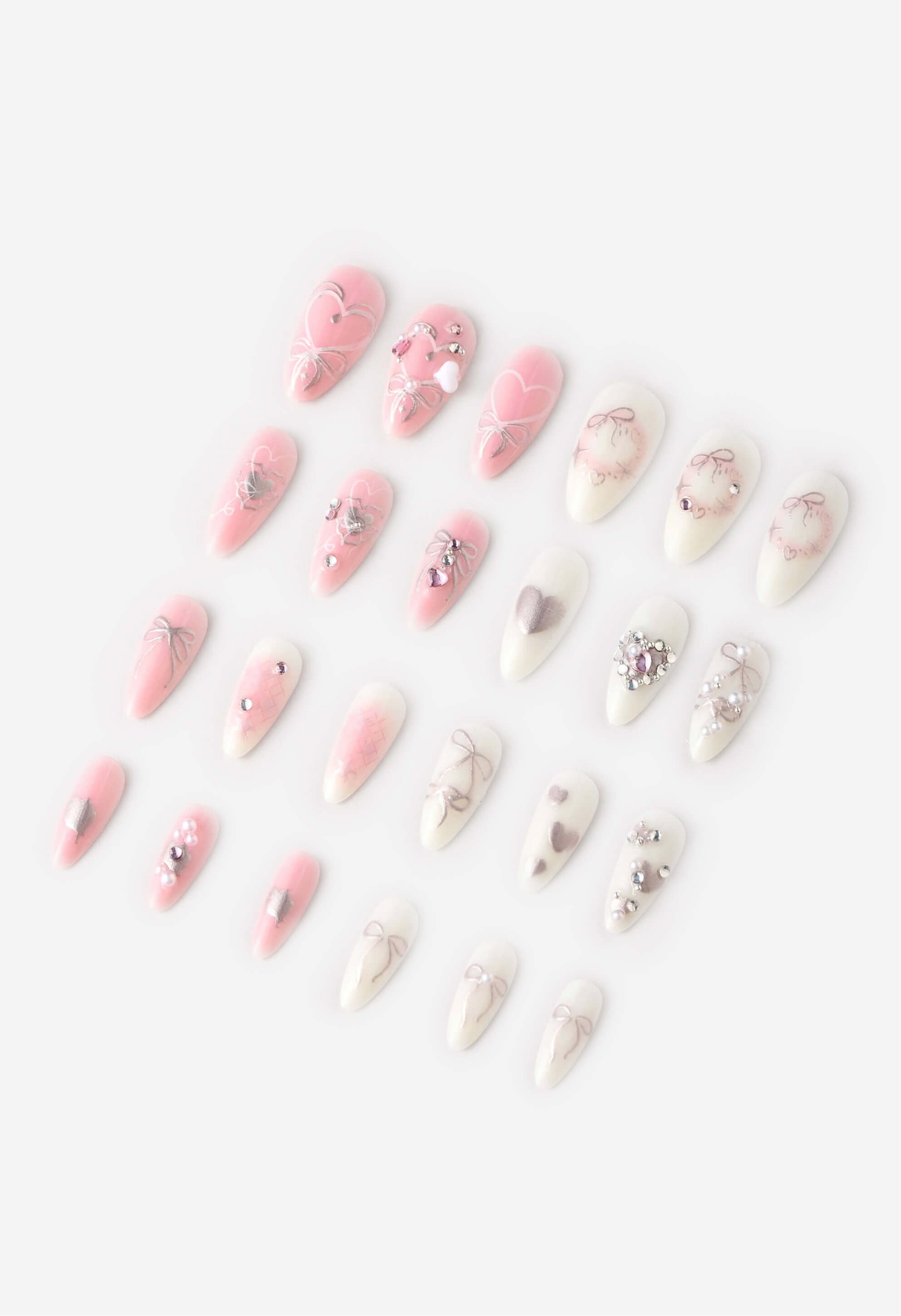 Hearts of Pearls - Almond Press-On Nails