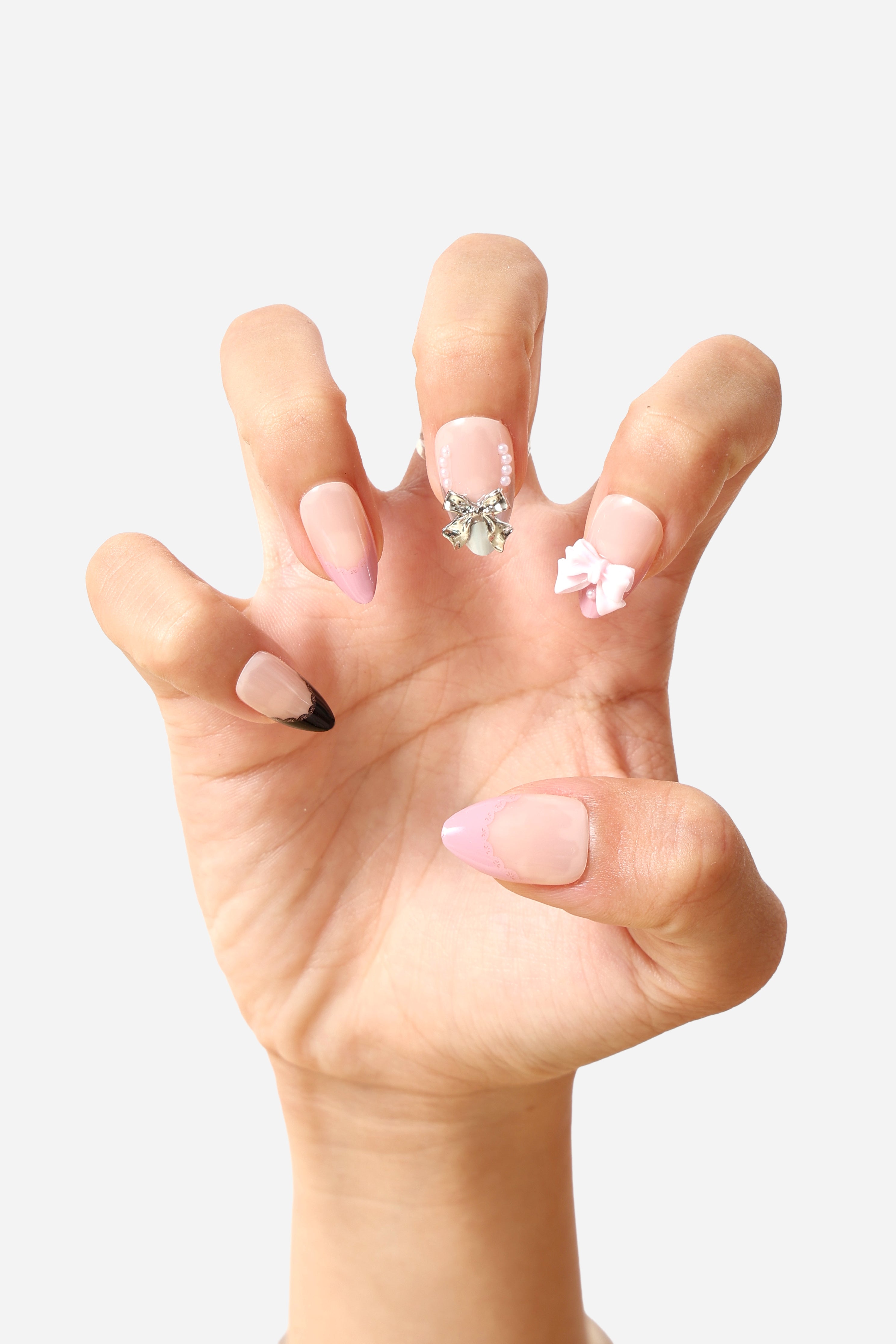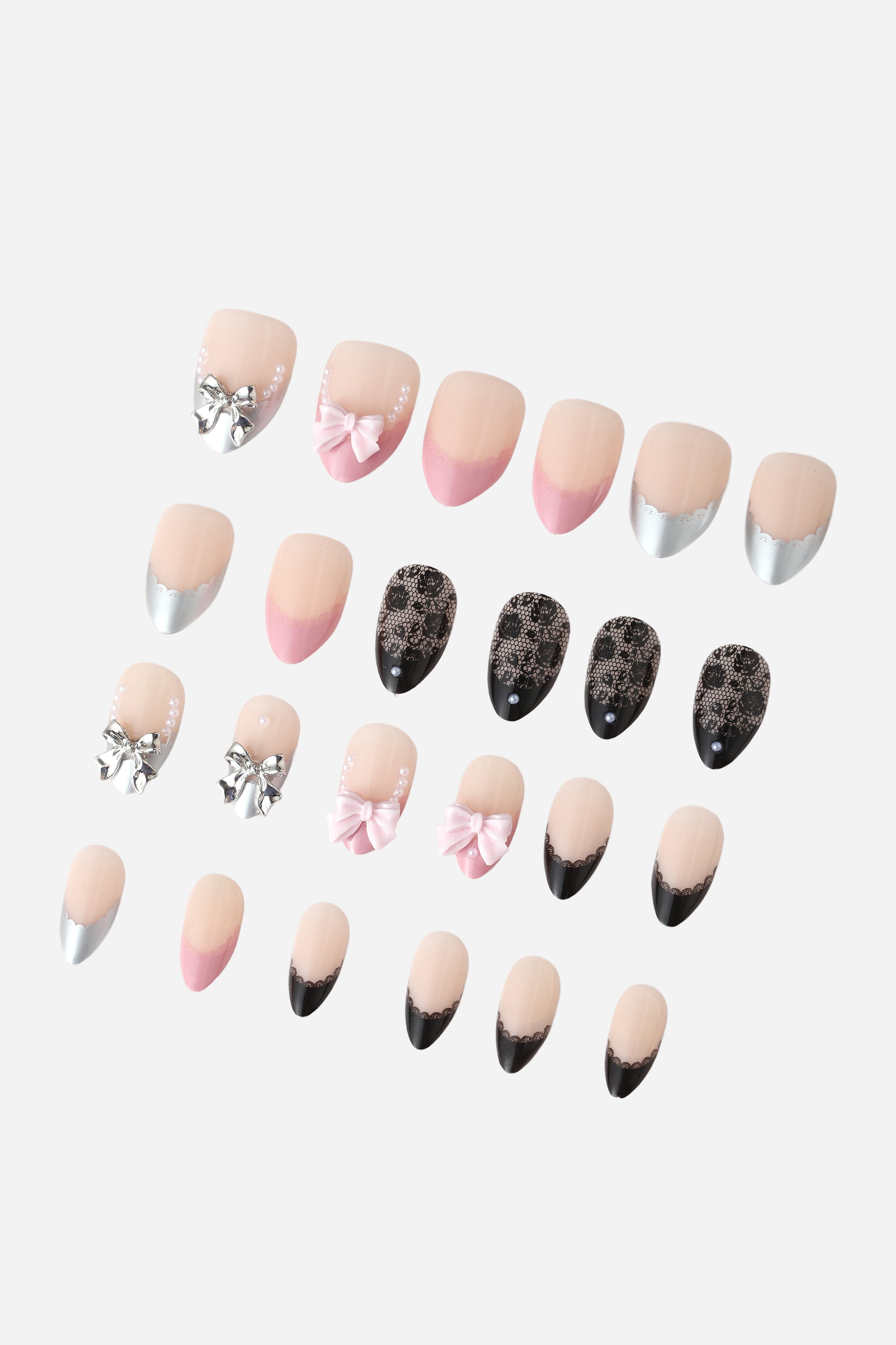 LACE AND BOWS - SHORT ALMOND PRESS-ON NAILS