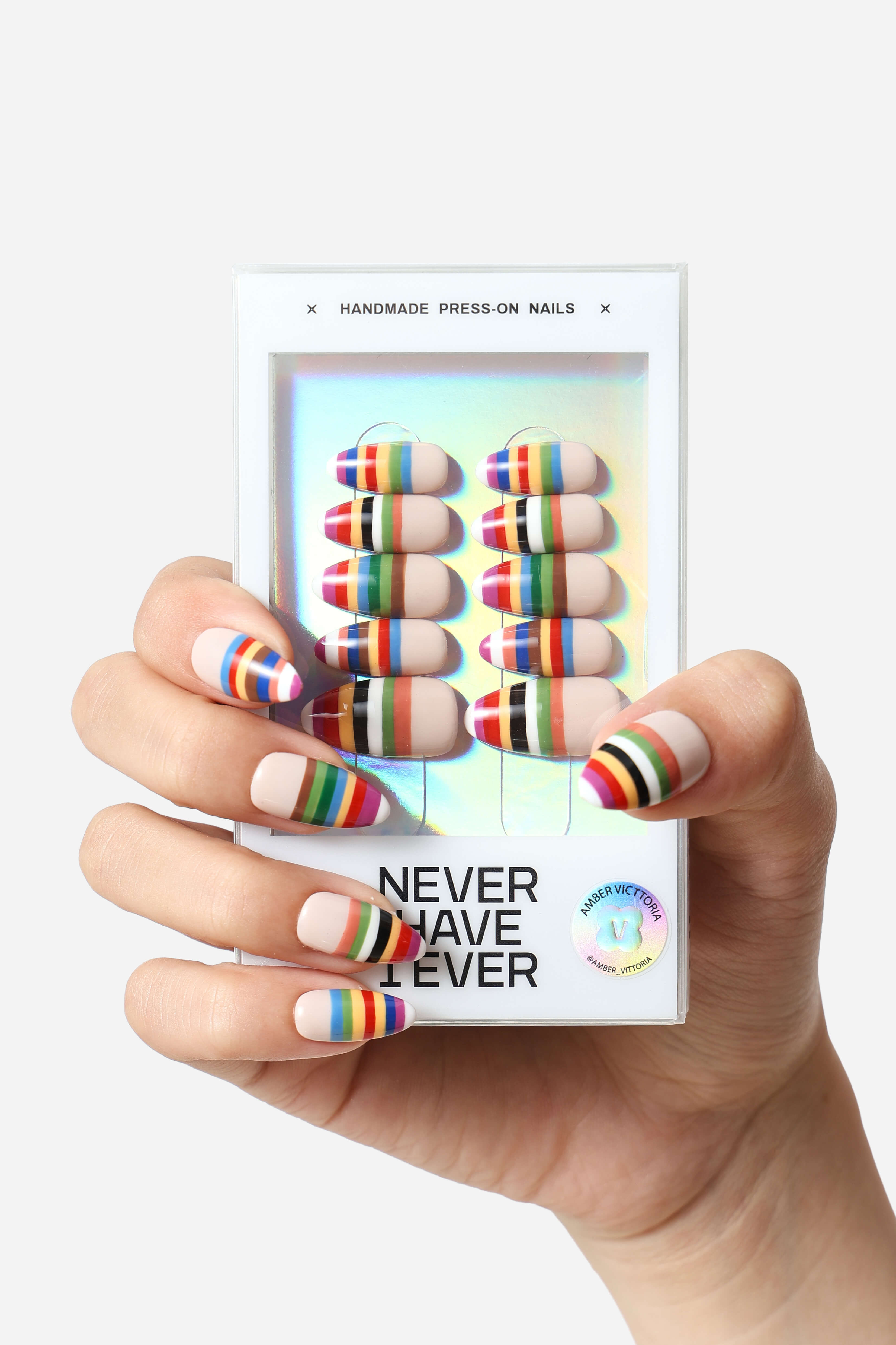 Quality handmade press-on nails feature unique designs created by the artist Amber Vittoria