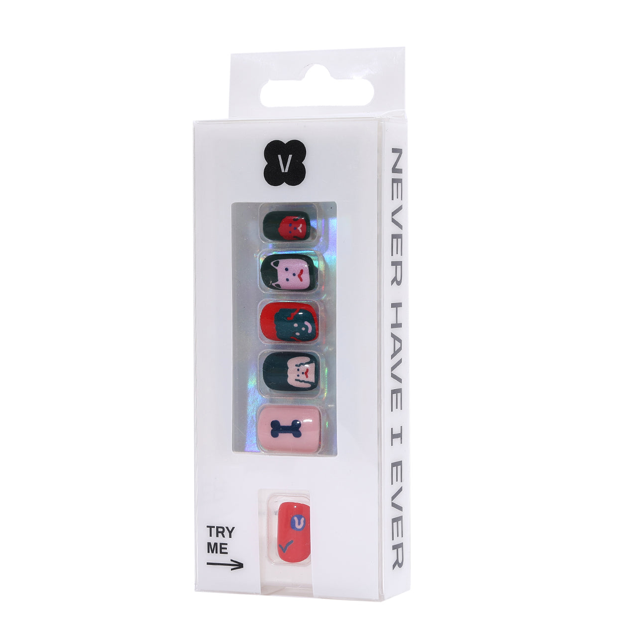 A charming set of reusable press-on nails feature playful designs.