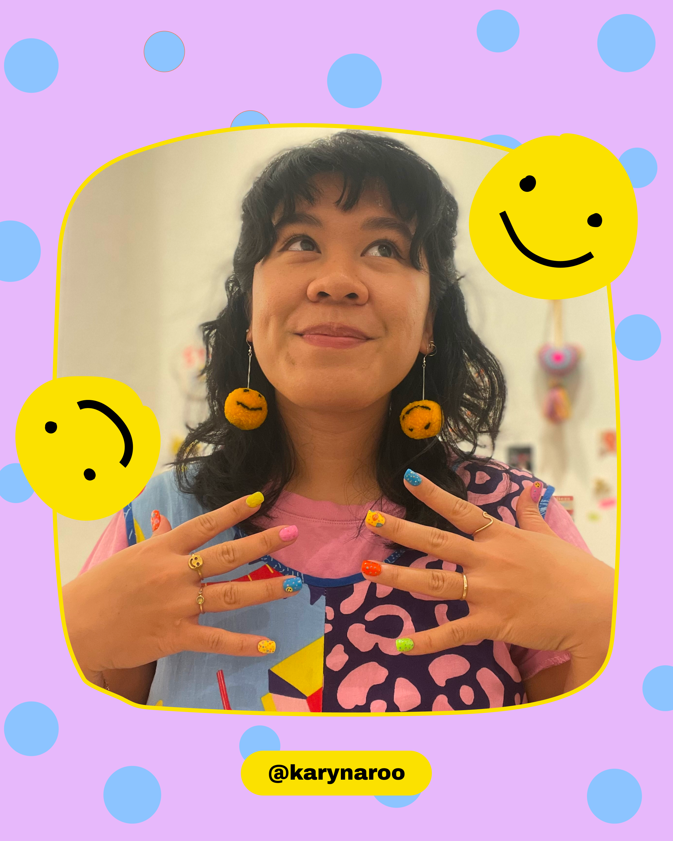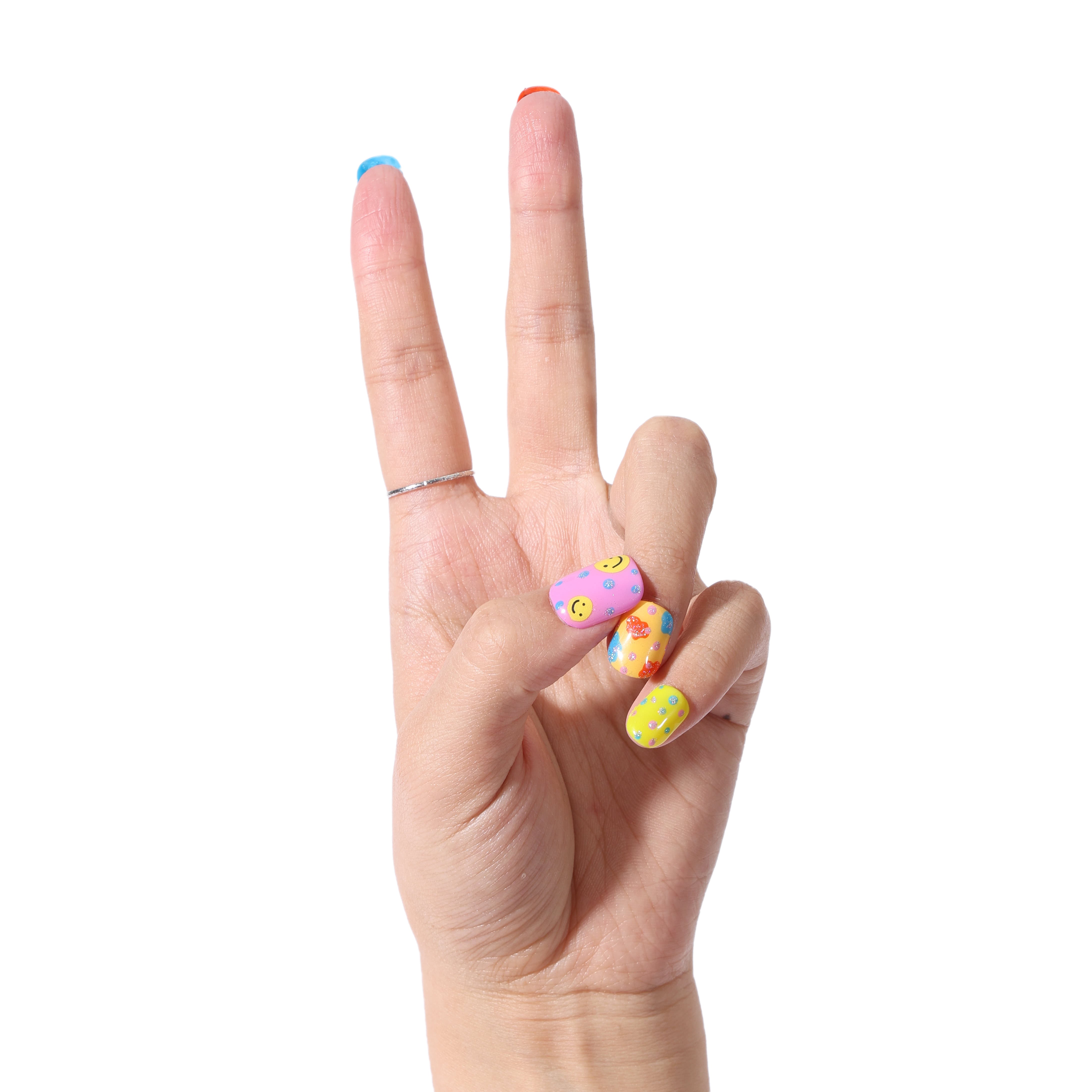 A charming set of reusable press-on nails feature playful designs.