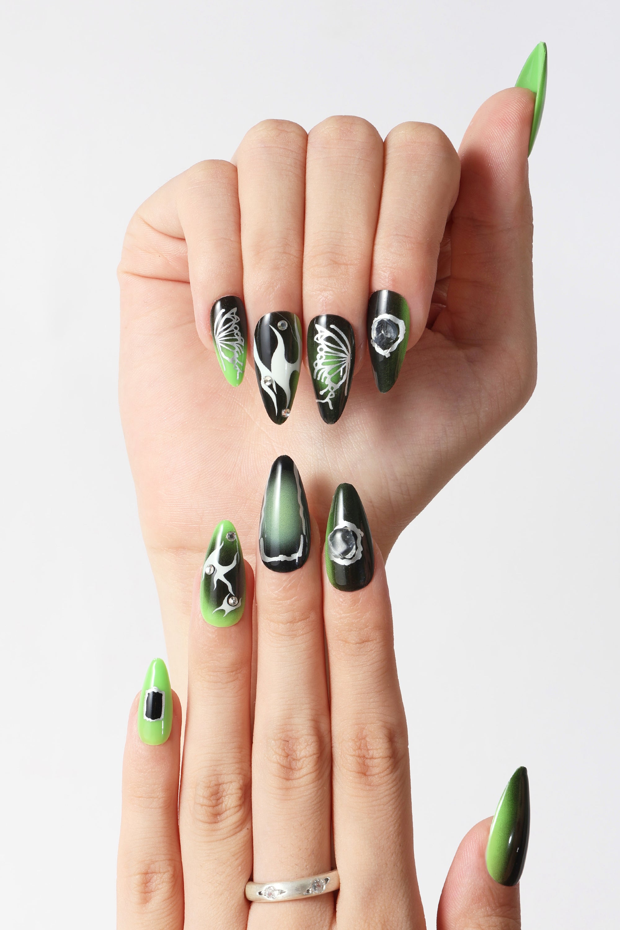 • Quality press-on nails feature unique designs created by the artist community