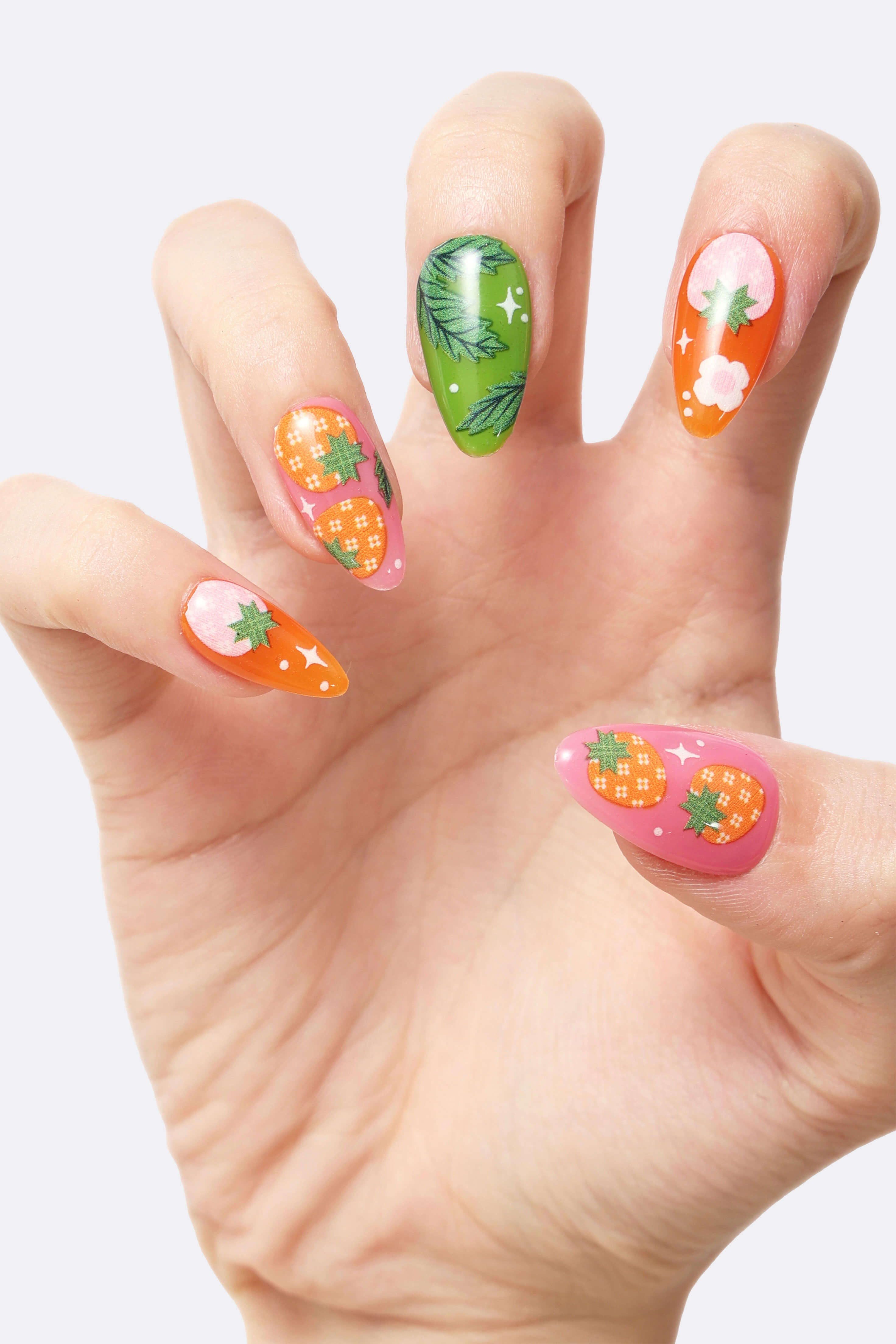Quality handmade press-on nails feature unique designs created by the artist Megan Roy